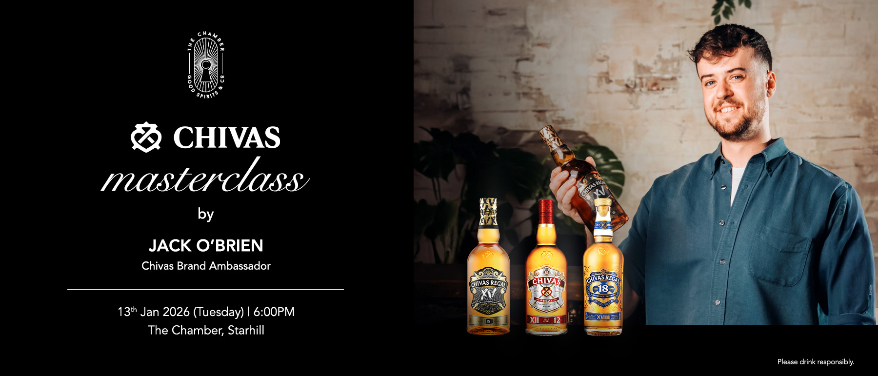 Come join us this 13th of Jan 2026 for an exciting Chivas Whisky Masterclass featuring Chivas 12, Chivas XV and Chivas 18 with the Chivas Brand Ambassador, Jack O' Brien!